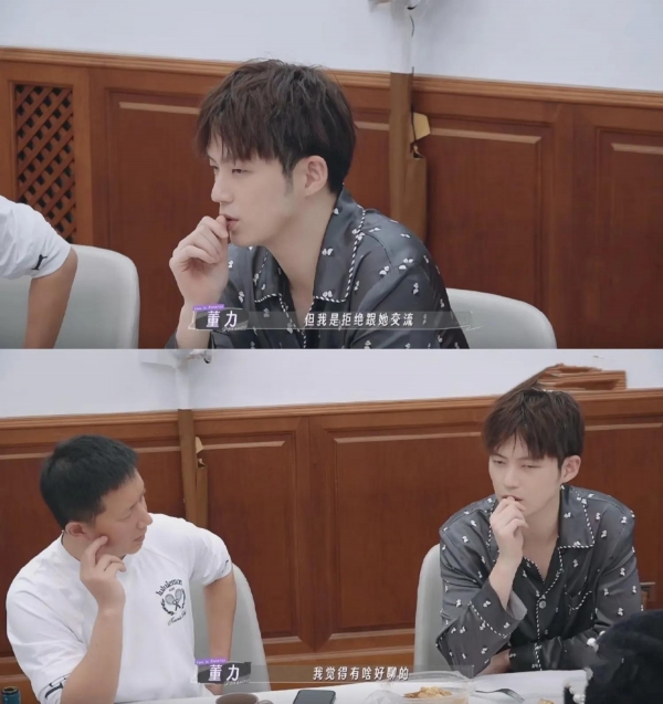 也许很多观众也会说,老夫老妻是这样的啦,时间久了亲密接触会变少。但我觉得问题并不是在这种行为多与少上,而是在情商上。其他几对夫妻之前评价他"嘴笨"真的已经是很善良的说法了,而这一期,当董力又踩到了大家的雷点,大家的眼神暴露了内心真实所想。