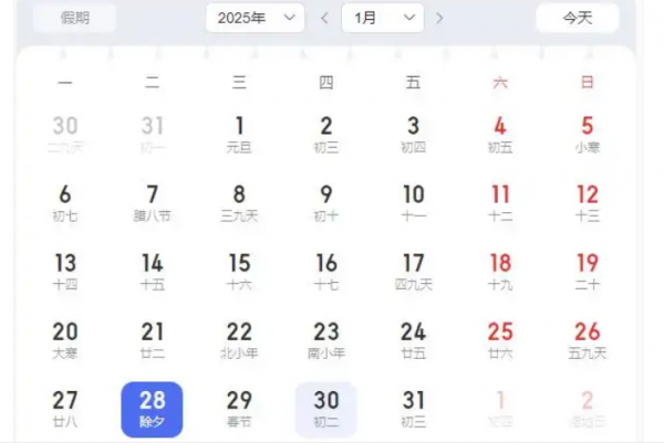 春节法定假期是从除夕开始算的,没有大年三十的年份,除夕就是腊月二十九。比如2026年除夕是2月16日,2028年除夕是1月25日,大家买火车票、机票时,一定要以"农历腊月二十九"对应的公历日期为准,尤其是要提前请假的人,别因为记错日期耽误行程。
