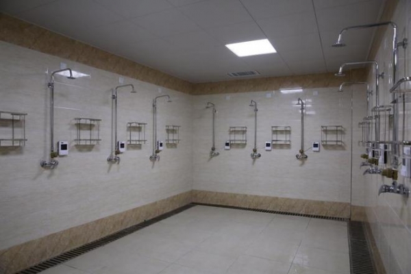 偌大的场地上只有几排淋浴器光秃秃的排列着,先不说有没有隔间了,这要是真的洗起来,一扭脸就能跟旁边的同学来上一个对视,这也太尴尬了吧!
