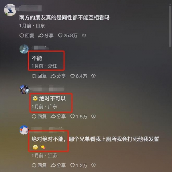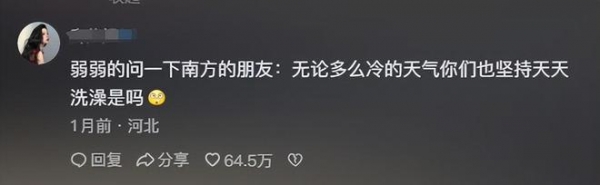不过这些对于南方朋友来说简直就是在讲鬼故事,光听描述就能用脚趾抠出三室一厅,有位南方的网友评论:知道你们北方人豪迈,但也不至于这么开放吧?!