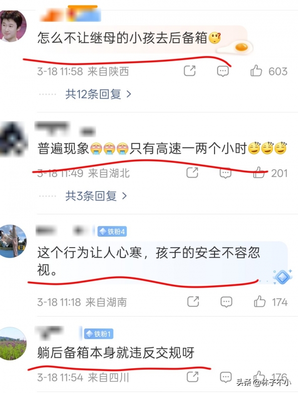 有网友质问:"怎么不让继母的小孩去后备箱?"