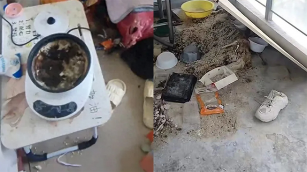 只见房间内堆积的全部都是垃圾,根本就没有可以下脚的地方,吃剩下的食物以及喝过的饮料瓶瓶罐罐全部都堆积在地上床上,就连电饭煲里都已经生蛆了,包括被窝里也全部都是蛆虫,不敢想象一个女孩是怎样在这样的环境下生活下去的。