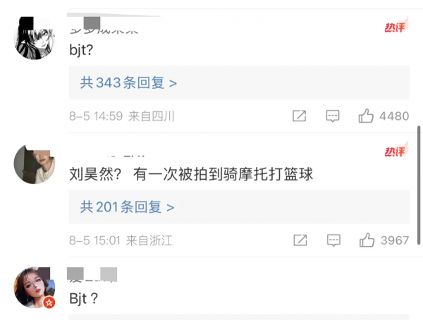 除了蔡徐坤外,评论区还有很多明星无辜躺枪,其中就有刘昊然,只因他有一张照片是骑摩托打篮球,而且他的女友是知名演员周冬雨。
