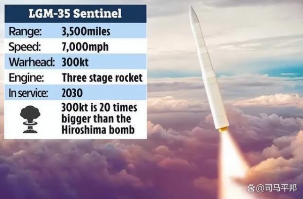 相比于当前服役的"民兵3"陆基洲际弹道导弹,"哨兵"具有更智能化和现代化的设计模块,并且采用新型固体燃料发射,反应时间更加迅速,综合突防能力更强。