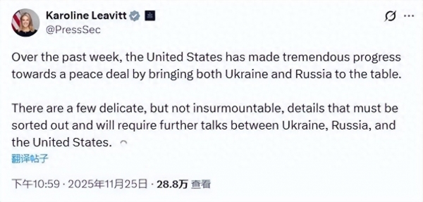 △美国白宫新闻秘书莱维特25日发布声明称:"还有一些棘手但并非不可克服的关键细节亟待解决"。