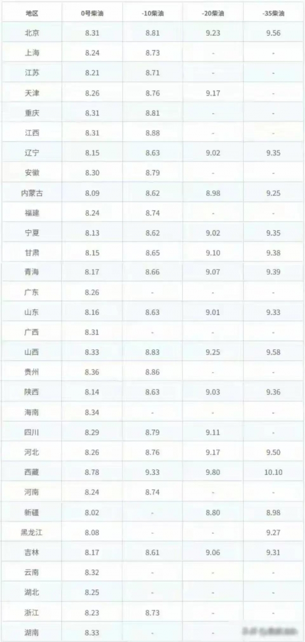 • 广东、江苏、浙江:7.97~8.03 元/升