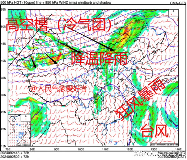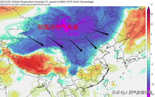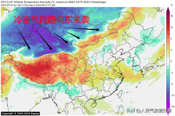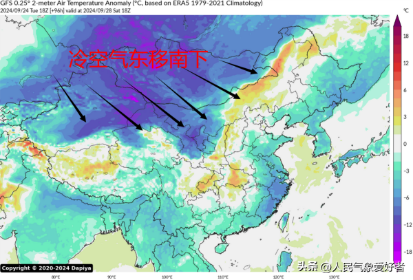 根据中央气象台数值预报,预计9月27日前后,将有高空槽(冷气团)自西向东进入我国,依次影响新疆、西北地区东部、内蒙古、东北、华北、黄淮、江南、西南地区东部、华南等地,并带来较强的降温与降雨天气过程。预计我国中东部大部地区将有4-8度降温,其中西北、内蒙古、华北北部、东北等地降温幅度可达10-14度;