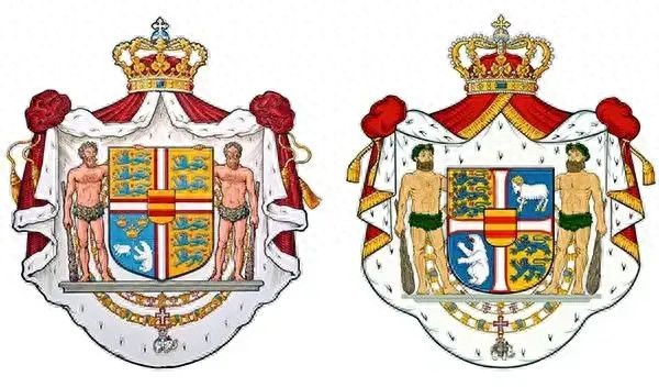 原丹麦国徽(左)和新国徽。(网络截图)