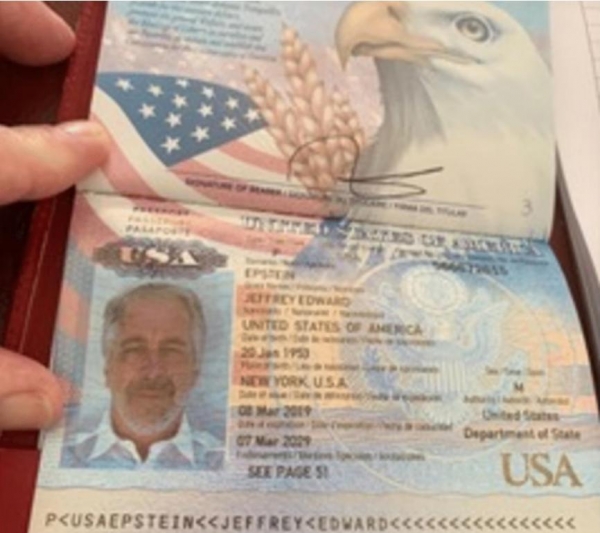 照片还包括爱泼斯坦于2019年3月签发的最后一本美国护照,护照中注明其曾因针对未成年人的性犯罪被定罪的记录。此外,还有一张爱泼斯坦面带微笑、与一名身穿类似美国海关与边境保护局制服的人员握手的照片。