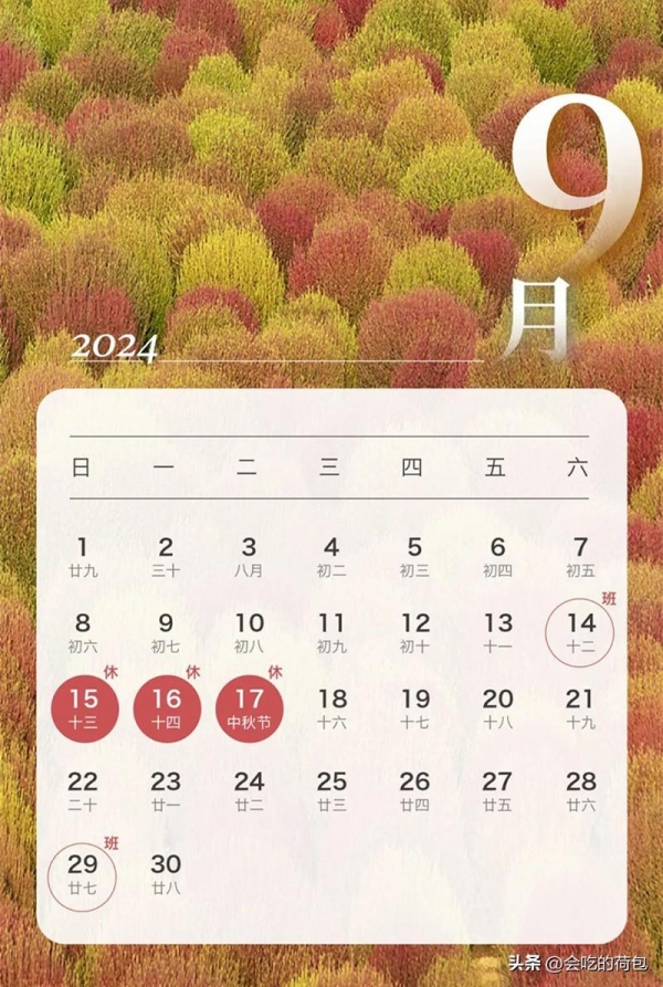 正所谓"金九银十",九月份和十月份进入秋收时令,注定是令人愉快的!从小就喜欢秋天,原因就是因为秋天能拥有有两个假期:中秋节和国庆节。中秋吃月饼、赏月、赏花灯,还可以和家人团聚,过了中秋很快又能迎来更长的国庆节假期,那时就可以趁长假外出旅游。今年的中秋和国庆,你是怎么安排的呢?在做计划之前,先来看看2024年最新"中秋国庆放假通知"吧,有2个坏消息、1个好消息,提醒大家提早了解。