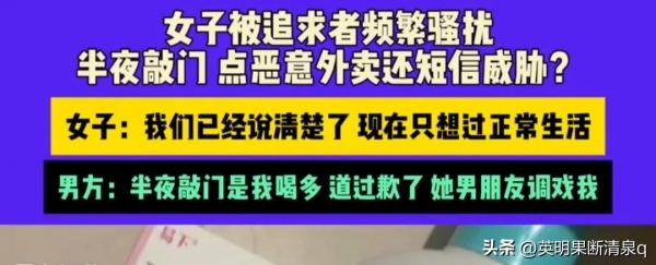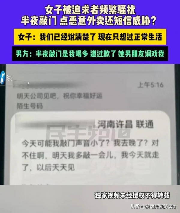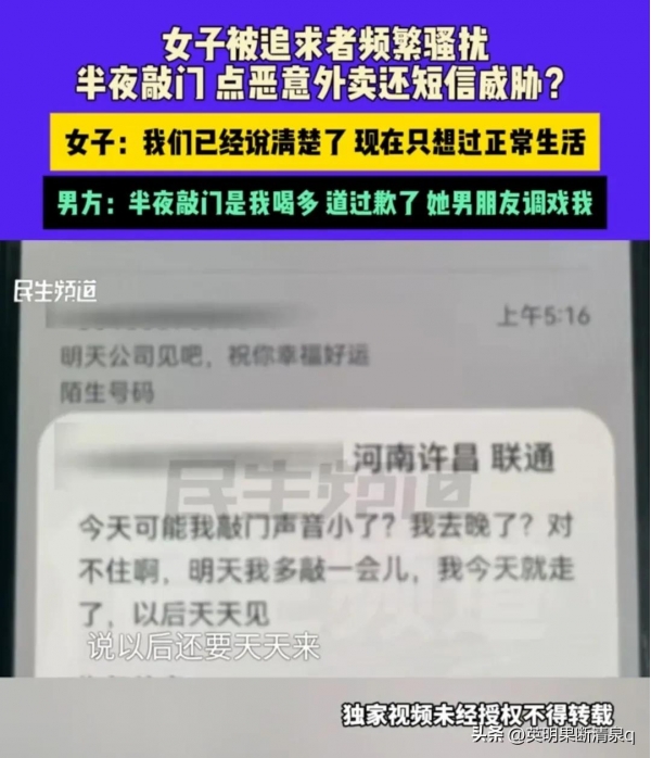 这事儿得从几个月前说起。这名女子,咱们就叫她小林吧,是个性格温婉、工作努力的姑娘。可自从被这位追求者盯上后,她的日子就没消停过。追求者不仅经常在半夜敲她的家门,还时不时发些威胁短信,说什么"以后天天来",把小林吓得晚上都不敢一个人在家。
