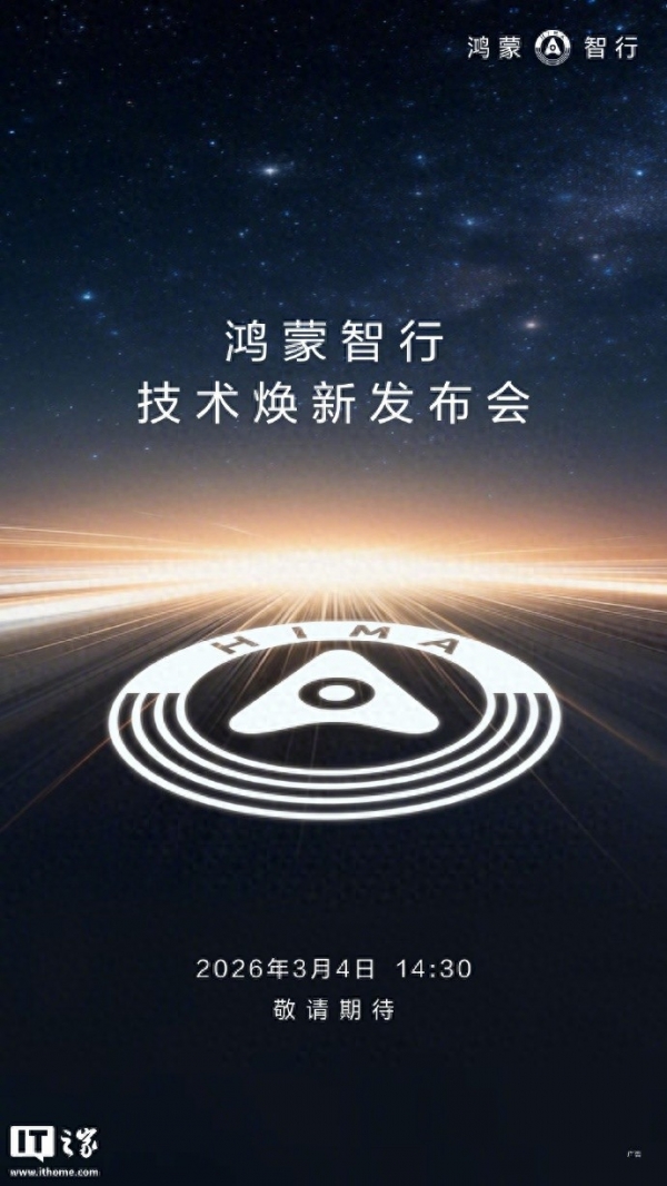 IT之家 3 月 4 日消息,鸿蒙智行技术焕新发布会已官宣定档 3 月 4 日 14:30,官方宣传语为:"万象更新,驭见未来。"