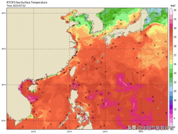 预计在7月25日前后,97W将正式进入东海水域,在温暖海温和高空东风流协同作用下,不排除其有发展为今年第8号台风"范斯高"的可能性。尽管这个台风的发展潜力尚存变数,但由于它的结构问题较为明显,难以快速整合能量形成紧凑核心,因此即便升级为台风,其中心强度可能有限,风雨能量依然主要集中在外围的螺旋雨带上。