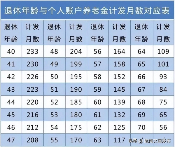 其中,50岁退休对应195个月,55岁对应170个月,60岁对应139个月。