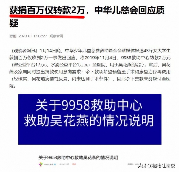 当时,一位名叫吴花燕的女孩身患重病,牵动了无数网友的心,大家纷纷慷慨解囊,为她捐款数百万元。然而,中华儿慈会却只将其中2万元转给了医院,剩余款项去向不明,引发了公众的强烈质疑。
