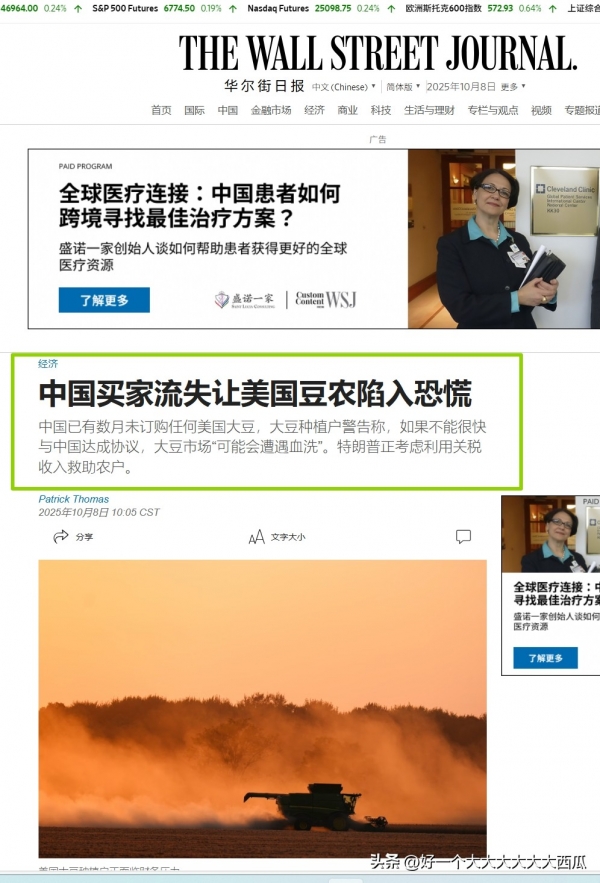《华尔街日报》甚至用"中国买家流失让美国豆农陷入恐慌"为题来叙述这一波的贸易困境。