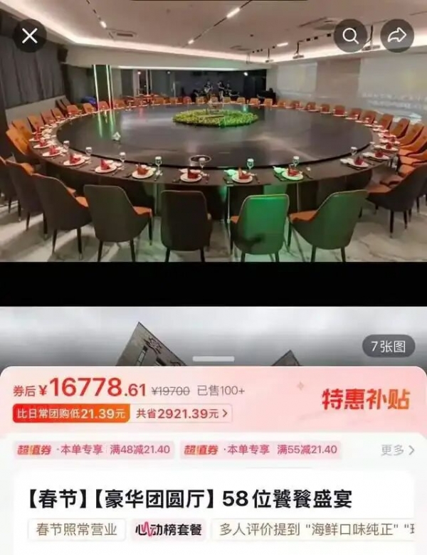 近日,有浙江网友通过社交平台发布一段视频称,他们公司在一家餐厅举行年末聚餐,餐桌可以坐得下50多人,引起不少网友的好奇。因为圆桌巨大,菜转走后很久才能回来,不少网友仿写歌词调侃:"有些菜,一旦错过就不再"。