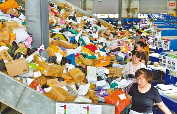 快递包裹堆积如山