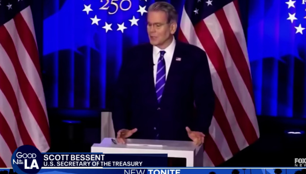 谈及纽森未能受邀在"美国之家"演讲,贝森特大加嘲讽起来:"他为什么去不了?看看他推行的经济政策酿成了什么恶果:民众纷纷逃离加州,巨额财政赤字高悬,全美规模最大的无家可归者群体滞留于此,还有帕利塞兹地区那些在去年洛杉矶山火中痛失家园的穷苦民众。"