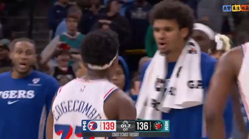 费城76人恩比德34分10板8助1断2帽,马克西34分4板12助2断,VJ-埃奇库姆25分6板4助4断1帽。
