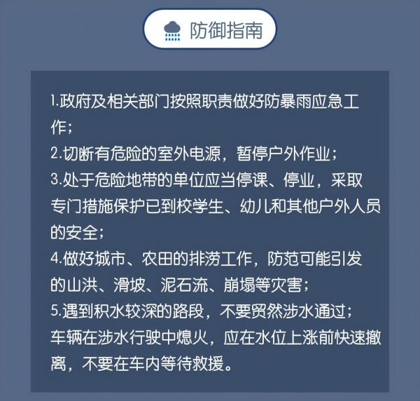在面对如此大的强降雨,提醒各位家人们出行要注意安全,做好防御工作。在这里也给大家一个防范指南: