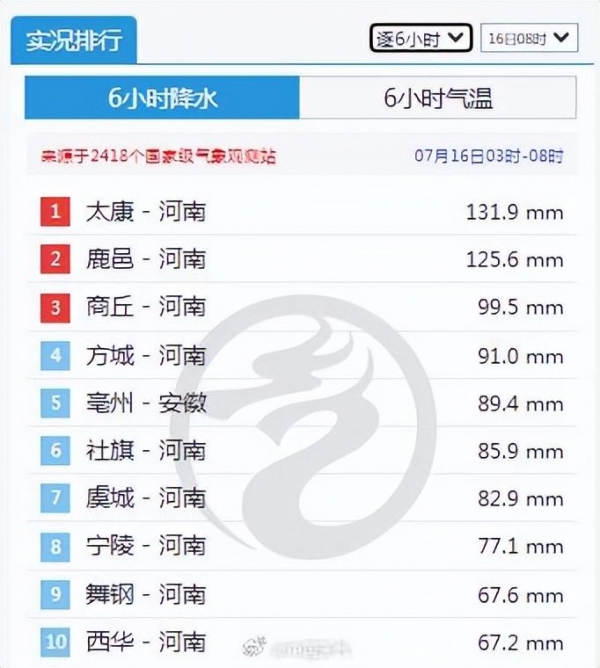 而且在降水量的排行榜上基本上都是河南的各个市区上榜,说明河南的降水还是比较严重的