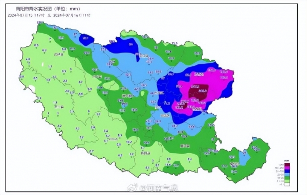 昨日至今天上午南阳东北部周口北部开封南部出现特大暴雨