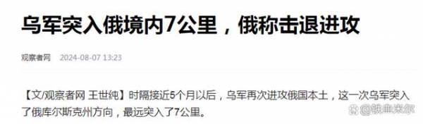 这是去年以来, 乌军第三次通过地面反攻俄罗斯本土,前两次乌军是突袭了俄本土的别尔哥罗德州。