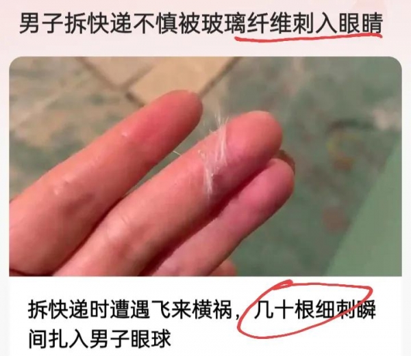 到达医院之后,通过医生的确诊,结果真的是令人感到震惊又后怕,在显微镜下,可以看到夏先生的右眼角结膜以及眼睑密布着几十根比头发还细的透明细刺,这些异物也就是夏先生拆快递时,支架断裂喷发出来的玻璃纤维,恰好扎入了他的眼睛。
