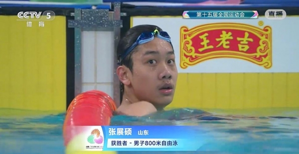 1500米自由泳可不是普通项目,堪称游泳赛场的"耐力极限挑战"。全程要绕泳池30圈,对体能、耐力和意志力都是极致考验,能在这种高强度比赛中夺冠,含金量本来就很高。张展硕作为该项目顶尖选手,起跳入水后就保持领先,划水节奏稳定,转身动作干脆,每个细节都显露出深厚功底。最后50米冲刺,他拼尽全力拉开与对手的差距,率先触壁夺冠。按常理,这样一场硬战拿下冠军,就算累到虚脱,运动员也会露出释然的笑容,和教练、队友拥抱庆祝,可张展硕却打破了所有人的预期。