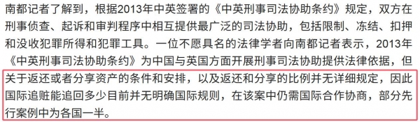 如果这些资产无人认领,那将一半归英国警方,一半归英国内政部。