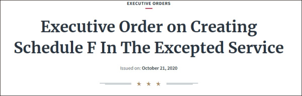 "F计划"首次颁布于2020年10月。据介绍,数万名被认为对政策有一定影响、涉及机密和政策决定的公务员被重新划为"F计划"雇员;一旦被划归此分类,这些雇员将失去就业保护,成为自由雇佣雇员,更容易被解雇。该计划在拜登上任后不久被废除。