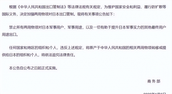 而北京自然得回击,1月6日商务部就出了公告,加强两用物项对日本的出口管制,重点是那些可能提升日本军事实力的东西,包括稀土这类关键材料。管制一实施,日本企业就开始紧张,稀土这玩意儿在半导体、汽车电机上少不了,断了供链子就得乱套。