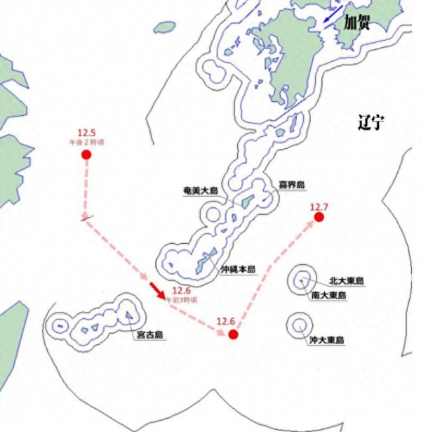 而现在的北上航线更是意味深长:沿琉球列岛东侧平行航行,对冲绳、宫古、石垣等军事要地形成持续压力;若继续北进,有可能经大隅海峡返航,也有可能完成首次"环日本列岛航行"。