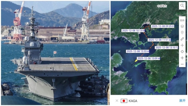 面对辽宁舰的强势逼近,日本海上自卫队于12月8日早间下令"加贺"号从广岛县的吴港海军基地紧急出航。