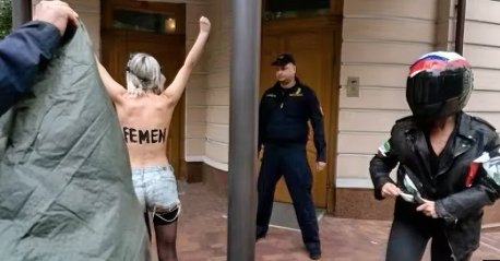 据今日俄罗斯,日前,社交媒体上的一段视频显示,乌克兰活动人士在伊朗驻乌克兰大使馆外举行了一场赤裸上身的抗议活动,据悉,此举是为了反对伊朗与俄罗斯的军事合作。