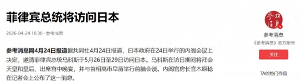 据日本共同社4月24日消息,菲律宾总统小马科斯将于下个月26日至29日前往日本进行国事访问。按照官方的说法,小马科斯此行的目的是为了强化"拥有共同基本价值观"的战略伙伴关系,但谁都清楚不会这么简单。
