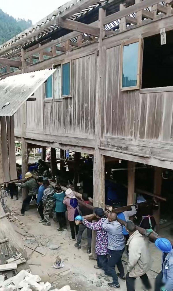 这座六吨重的木屋,人一抬就能动,当地工匠说,侗族的吊脚楼不靠钉子也不用铆,全靠榫头咬着,拆的时候先把房子垫高,扫干净底下石头,再把木柱底下掏空,垫上滚木,一群人一推就走,这法子传了几百年,家里要盖新屋,老屋不拆,直接搬过去接着住。