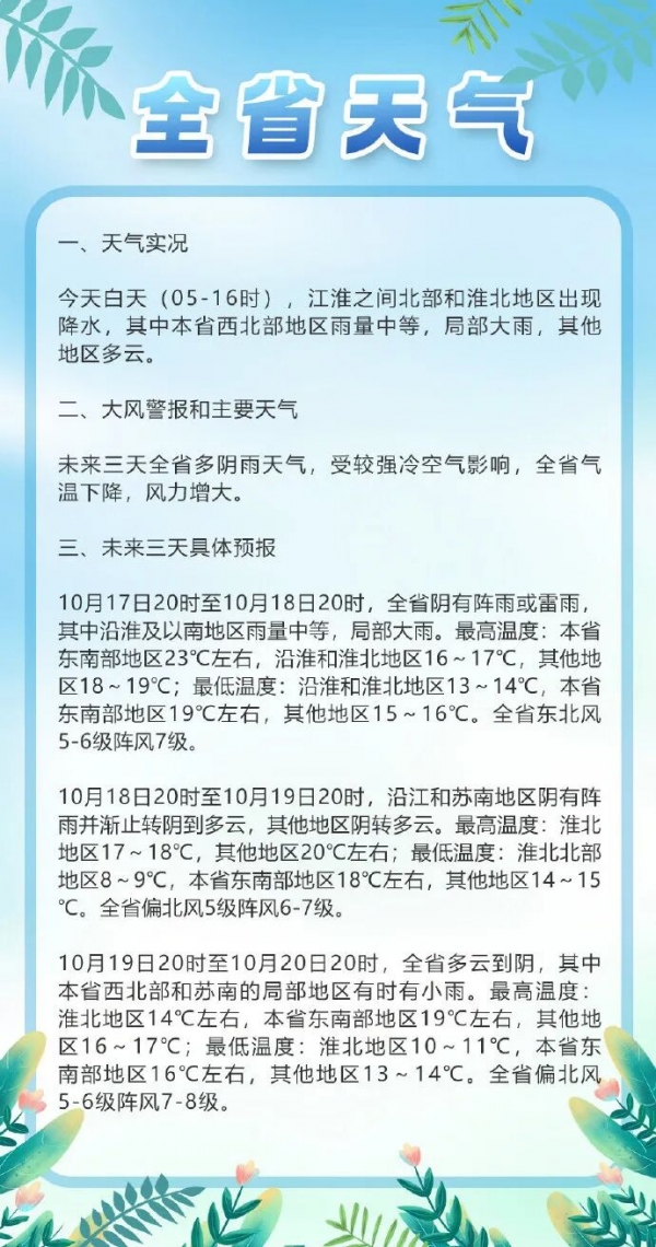 一起再来看看江苏的天气