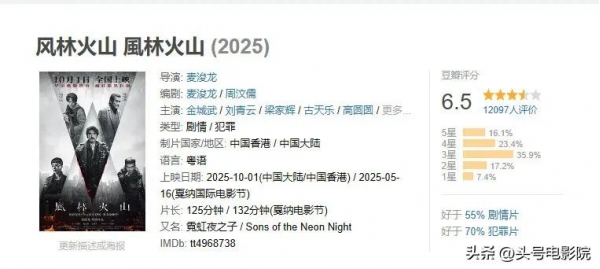 目前,豆瓣已经开分的国庆档电影除了《风林火山》,还有几部: