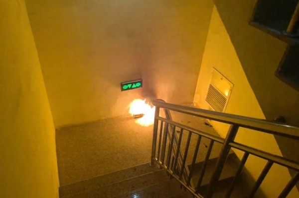 险些把小区楼道给烧了