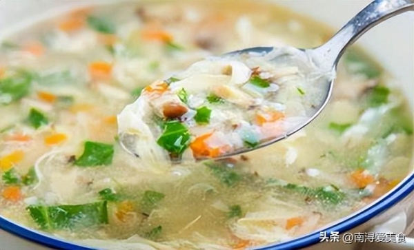 - 加蛋液时要慢,并且保持汤的微滚状态,这样蛋花才能完美绽放。