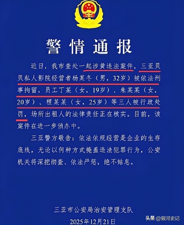 他们之所以会这么做,全是因为"钱",根据三亚警方通报的,短短半年,这家影院通过涉黄服务,非法获利数十万元。
