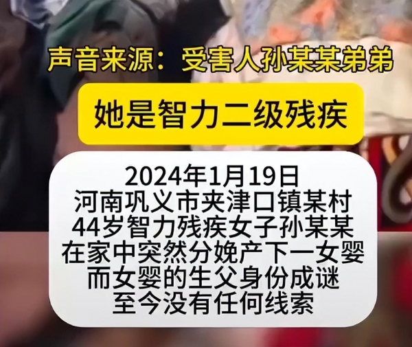 2024年,1月19日,在河南巩义的一个村子里,44 岁智力残疾的女子春玲,在自己家突然生了个女婴。没想到竟牵出了一桩强奸案。这是咋回事呢?据说春玲的公公为了抵偿债务,拿她当成筹码,让别人强奸她,更可恶的是,公公也参与了强奸。