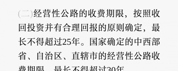 有的高速为多收费,提出改扩建理由,把收费期又往后推。有新的投入,费账一算,三十年变成四十年也有。现在有些地方讨论修改法规,想让收费期限更灵活。这会不会影响以后的免费进度,大家都看在眼里。