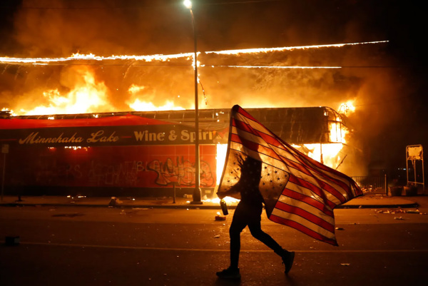 2020年5月美国非洲裔男子乔治·弗洛伊德被白人警察"跪杀"后,美国街头的抗议者。 美《外交政策》