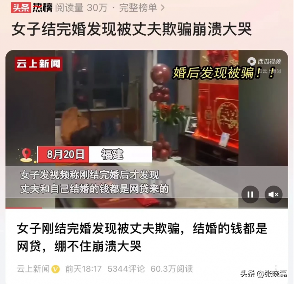 把爱"贷"回家!福建,女子刚结完婚,发现被丈夫欺骗,结婚的钱竟然都是网贷的!女子崩溃大哭:"感觉自己花钱把自己娶回家!夫妻应该同甘共苦,但是不能存在欺骗吧,这一点始终是根刺!"网友:这不就你要的态度吗?