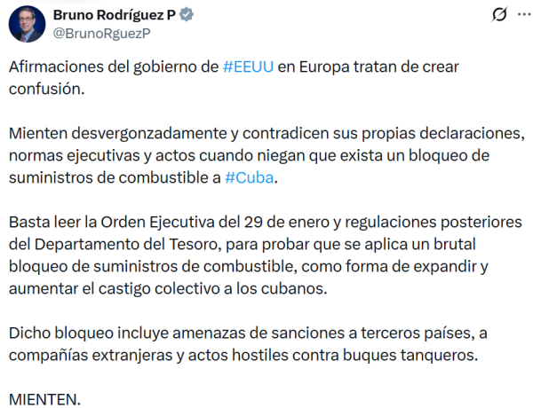 对此,罗德里格斯28日在X网站发文表示,这一说法与美方的行政命令、法规和行为自相矛盾,"只需阅读1月29日的行政命令以及美国财政部随后发布的规定,就能证明他们正在实施残酷的燃料供应封锁,以此扩大和加重对古巴人民的集体惩罚。"