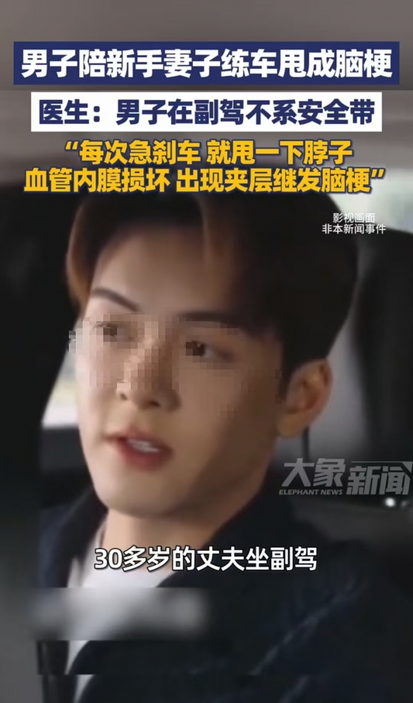 再加上检查报告显示血管内膜损伤,引起了夹层继发性脑梗,所以究其原因,就是丈夫陪妻子练车不系安全带导致的。