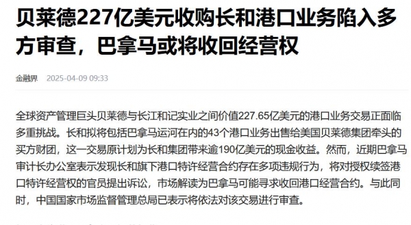 这对于李嘉诚来说就是最大的威胁,因为谁都知道,当下的港口博弈已经不是简单的商人之间的博弈了,而是大国之间的博弈,毕竟当下贝莱德收购港口的目的很明确,那就是要配合特朗普对中国的船只等征收相关费用。